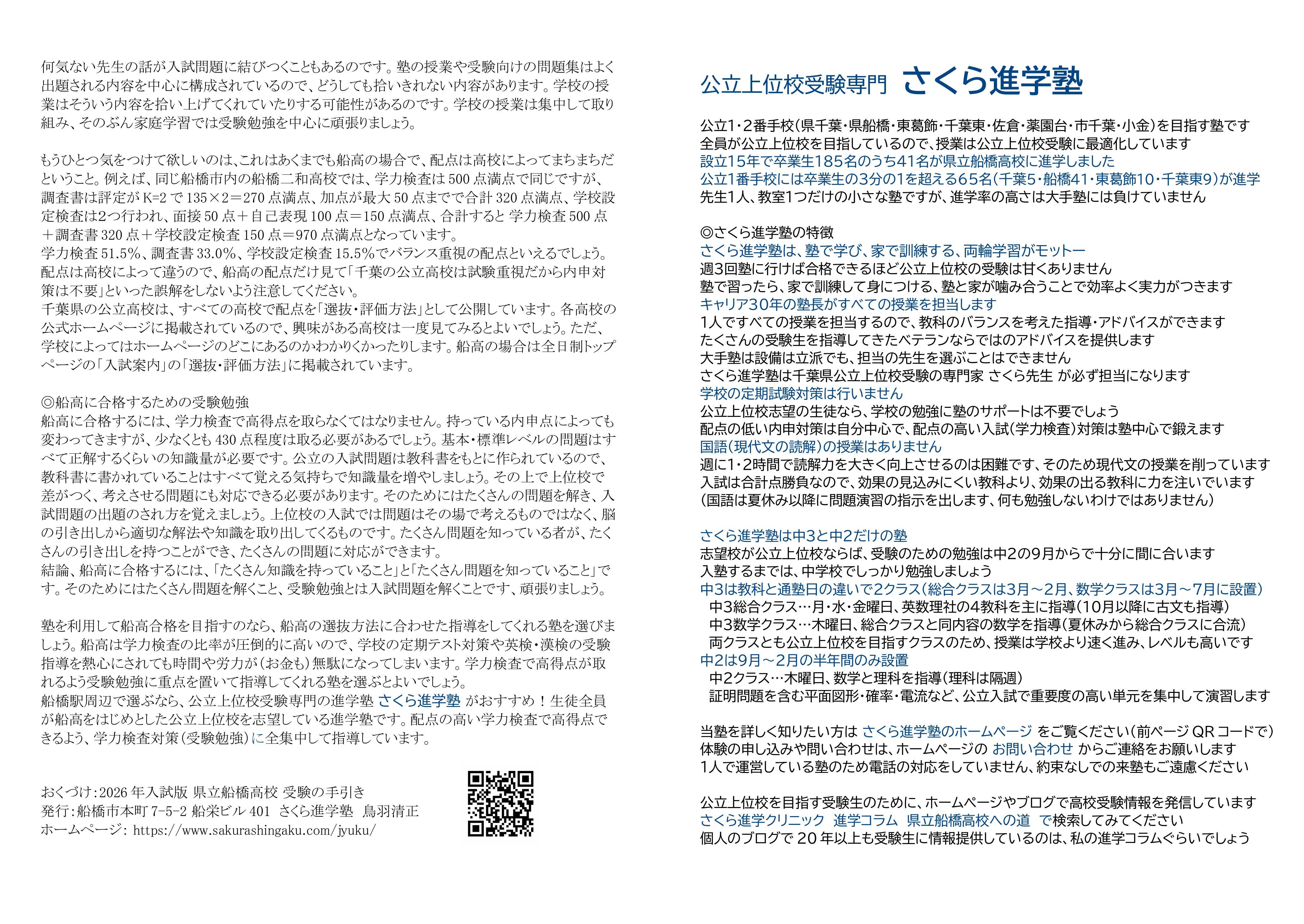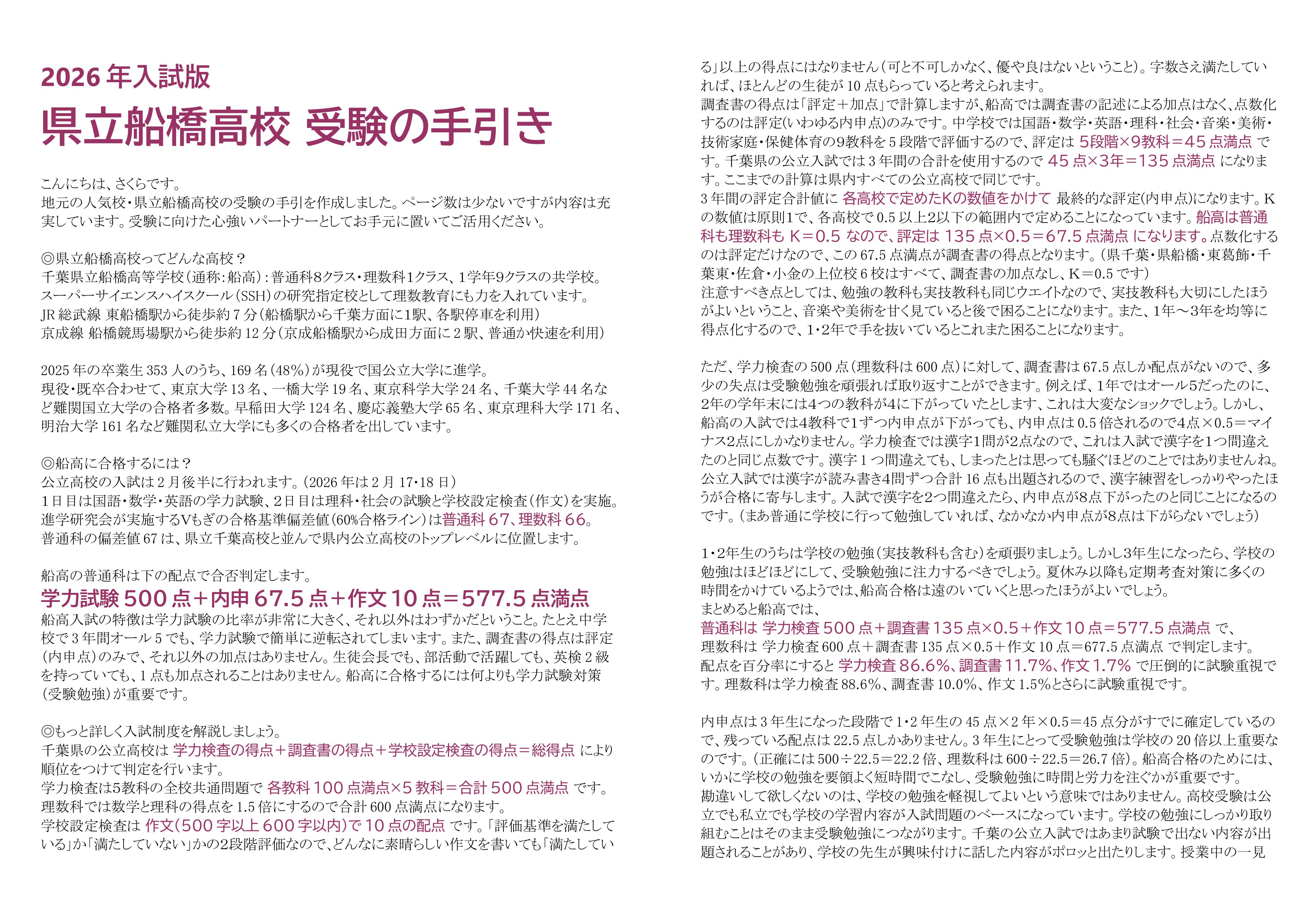 「県立船橋高校 受験の手引」を作りました、わずか4ページの小冊子ですが情報満載です